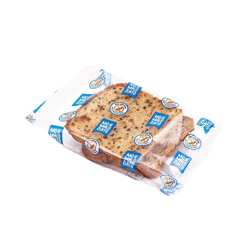 Sastojci: Kukuruzni škrob , 14% sjemenki (u promjenjivim količinama sjemenke suncokreta i lana), koncentrat proteina soje, zgušnjivači: E415, E464, E412, brašno riže, šećer, psyllium, sušeno kiselo tijesto (rižino brašno, starter kulture), inulin, dekstroza, karamela, mljevena pržena leća, koncentrat grožđa, sirup od šećerne repe, ekstrakt kvasca, mliječna kiselina E270, maltodekstrin, sol, regulator kiselosti E262, enzimi, voda, suncokretovo ulje, kvasac, sol, prirodno sredstvo za konzerviranje: E200. U tragovima može sadržavati sezam i orašaste plodove. Prosječnehranjivevrijednosti u 100g/ Nutrition Information: Energija/Energy 1157(275 kcal); Masti/Fat 7,49g; od kojihzasićenemasnekiseline/of which saturates 0,92g; Ugljikohidrati/Carbohydrate 45,1g; od kojihšećeri/of which sugars 1,2g; Bjelančevine/Protein 6,68g; Sol/Salt 1,23g. S niskim sadržajem šećera; S niskim sadržajem zasićenih masti