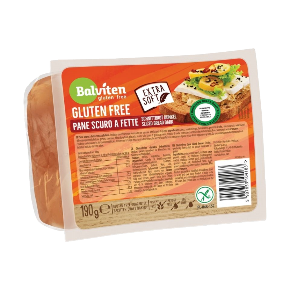 Sastojci: voda, kukuruzni škrob, rižino brašno, SOJINE bjelančevine, kanolino ulje, tvar za zgušnjavanje: hidroksipropil metil celulozda, ksantan guma; vlakna iz psyllium ljuskica, glukoza, kvasac, sol, heljdino brašno, ekstrakt jabuke, regulator kiselosti: natrijevi acetati. Može sadržavati SEZAM u tragovima. Prosječna hranjiva vrijednost na 100g: Energija 792 kJ / 188 kcal, masti 2,8g- od kojih zasićene masne kiseline 0,2g, ugljikohidrati 34g- od kojih šećeri 1,4g, vlakna 5,3g, bjelančevine 3,6g, sol 1g.