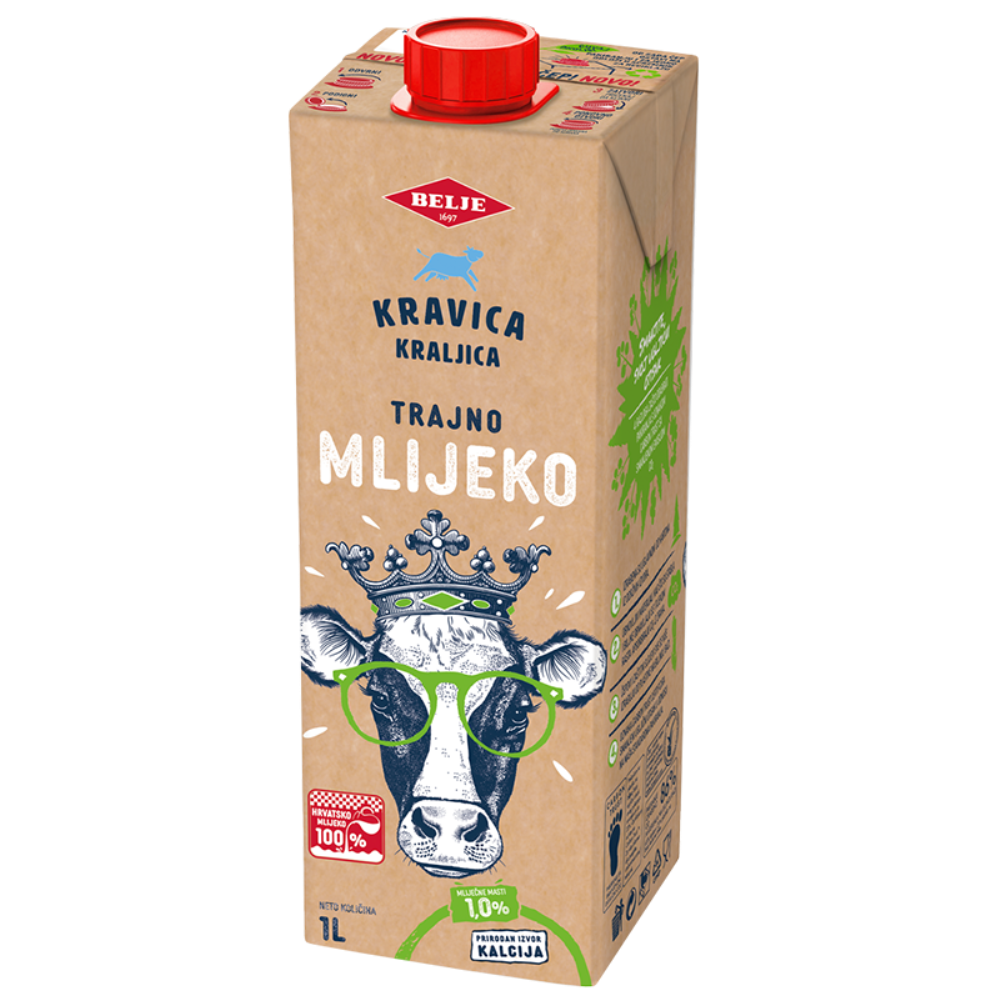Kratkotrajno sterilizirano, homogenizirano mlijeko s 1,0% m.m. Prosječna hranjiva vrijednost u 100g proizvoda: Energija 192 kJ/45 kcal, Masti 1,0g, od kojih zasićene masne kiseline 0,8g, Ugljikohidrati 4,9g, od kojih šećeri 4,9g, Bjelančevine 4,0g, Sol 0,1g, kalcij 120mg