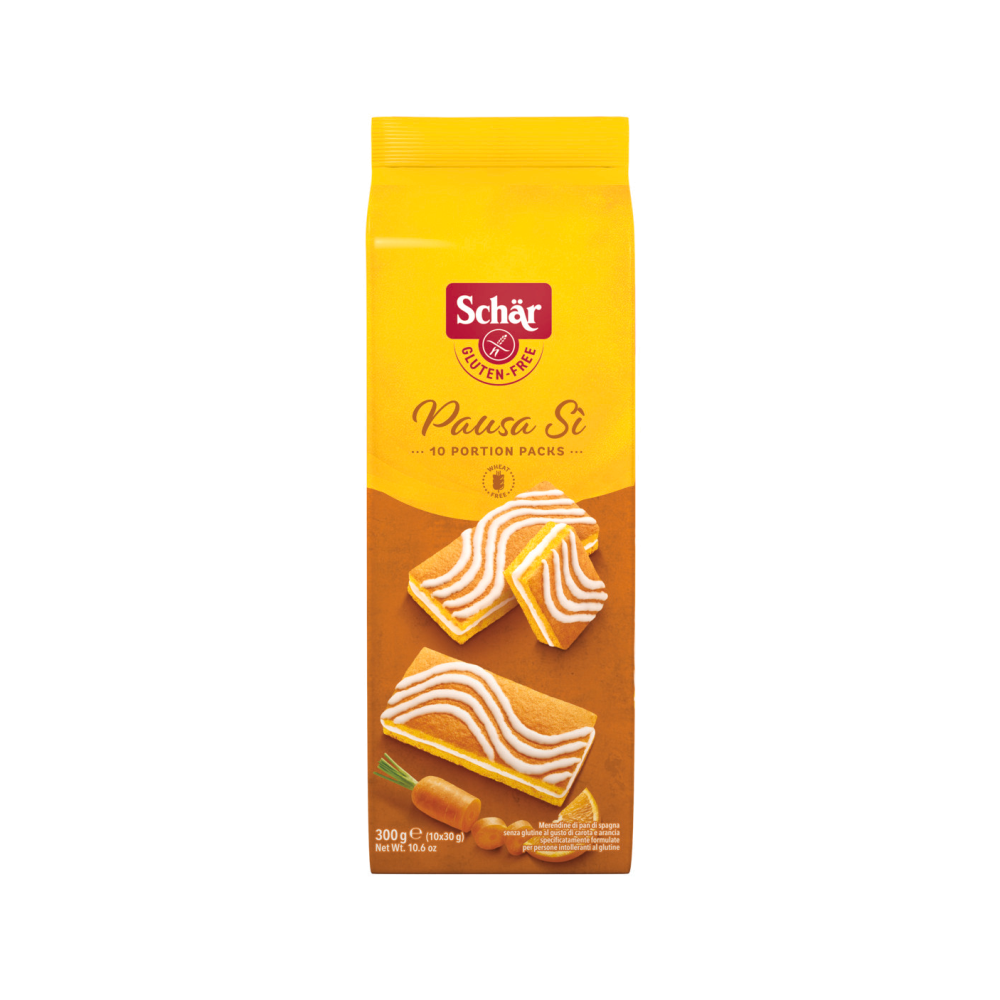 sastojci: šećer , jaja , glukozno-fruktozni sirup , biljna ulja (palmino, suncokretovo) ( visoko oleinsko suncokretovo ulje , kokosova mast , kakao maslac * ), rižino brašno , kukuruzni škrob , voda , stabilizator: sorbitol , obrano mlijeko u prahu , kukuruzno brašno , koncetrat soka od mrkve 1,8% , emulgatori: mono- i digliceridi masnih kiselina , sojin lecitin ; prirodni okusi , vlakna cikorije , dehidrirani sok od naranče 0,6% , sol , sredstva za dizanje tijesta glukono-delta-lakton , natrijev bikarbonat ; mliječni protein , sredstvo za želiranje: agar ; zgušnjivači: guma rogača , ksantan guma. 300 g (10*30g)