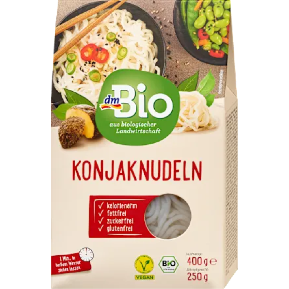Sastojci: voda, 5% brašno od korijena konjaca (Amorphophallus konjac)* Prosječne hranjive vrijednosti na 100 g: Energetska vrijednost 31 kJ / 8 kcal; Masti ukupno 0 g, od toga zasićene masne kiseline 0 g; Ugljikohidrati 0 g, od toga šećer 0 g; Dijetetska vlakna 3,9 g; Bjelančevine 0 g; Sol 0 g *iz ekološkog uzgoja.