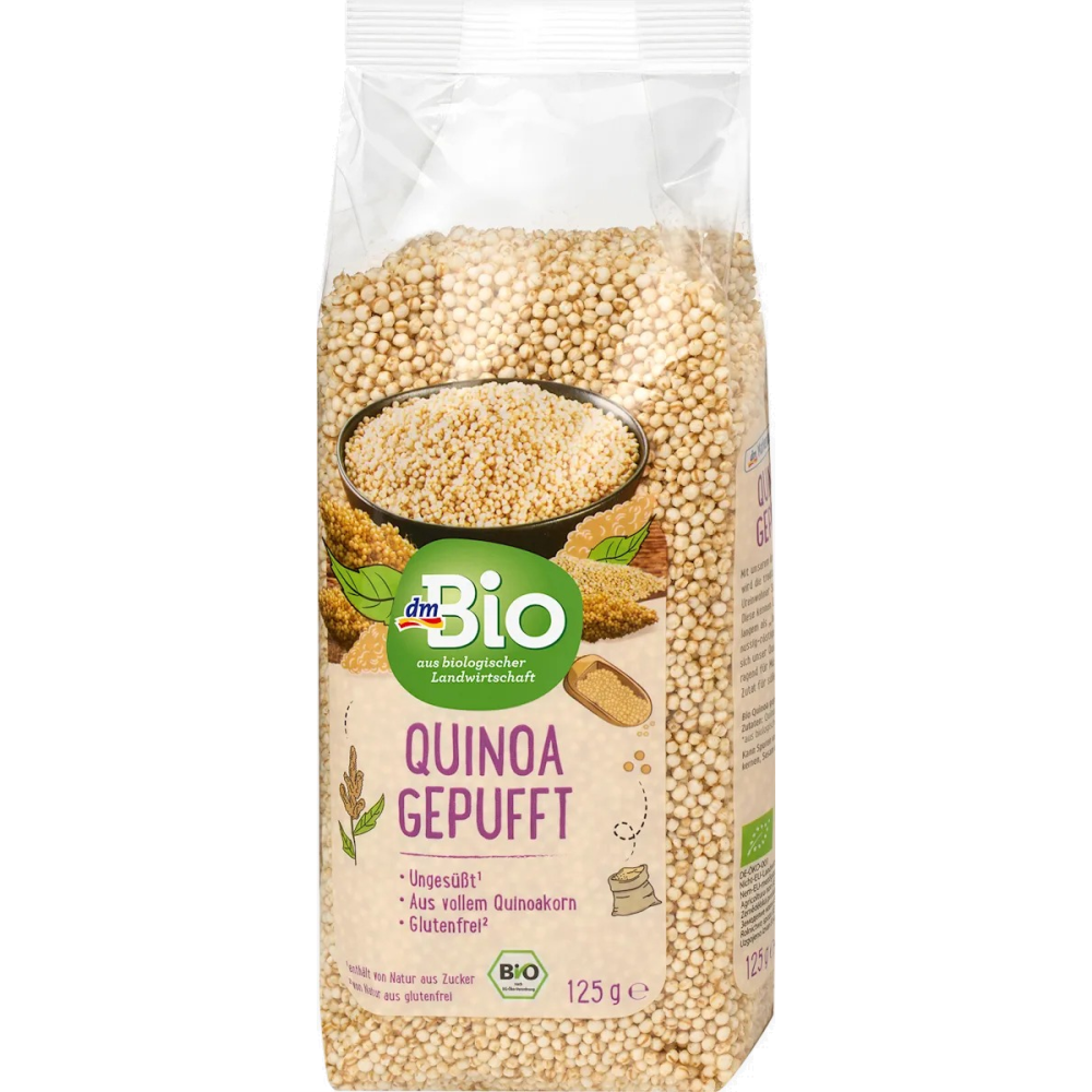 Sastojci: kvinoja*, ekspandirana Prosječne hranjive vrijednosti na 100 g: Energetska vrijednost 1.565 kJ / 370 kcal; Masti ukupno 4,5 g, od toga zasićene masne kiseline 0,6 g; Ugljikohidrati 71 g, od toga šećer 1,4 g; Dijetetska vlakna 4,4 g; Bjelančevine 9 g; Sol < 0,01 g *iz ekološkog uzgoja